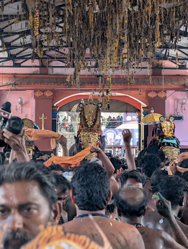 Vavar Juma Masjid—A Token of Harmony: Situated directly opposite the Kochambalam, the Vavar Juma Masjid (often called Vavar Palli or Nainar Mosque) is a unique Islamic shrine dedicated to Vavar Swami, Lord Ayyappa’s loyal Muslim companion. Pilgrims visit this mosque as an essential act of faith, embodying Kerala's centuries-old tradition of religious tolerance. The Chandanakkudam festival is also held at the mosque on the eve of the main ritual.