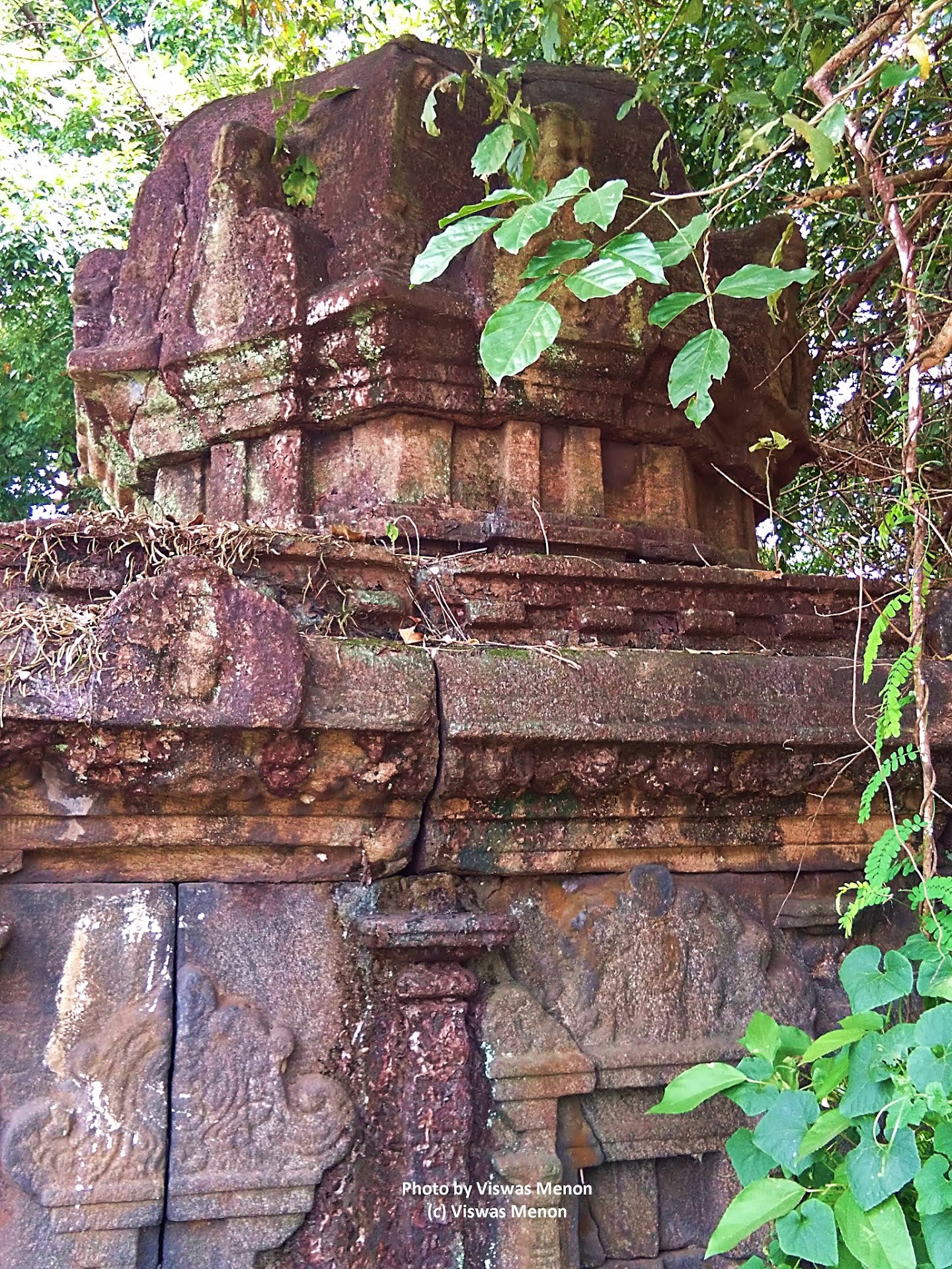 Kattilmadom is a pyramidal structure with a rectangular base. The upper part of the temple or the dome like granite structure is embellished with enormous ornamental works such as kudus or chaitya windows niches and thoranas arches.