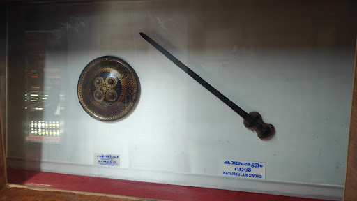 Among the many Kerala-style paintings seen in the palace, a distinctly placed mural painting is titled "Gajendra Moksham" of 154 square feet (14.3 m2) size, which is said to be the largest such find in Kerala. It is placed on the western end of the ground floor of the palace. The double edged Kayamkulam Vaal (sword) is also on display here. The palace houses, in its courtyard, one of the four statues of Buddha found in AlappuzhaDistrict