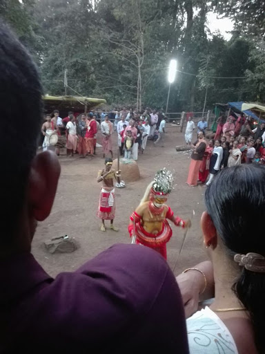 The Kunnathur Padi festival is held in a natural setting, atop Udumbamala in the Sahyadri Mountains. There are no temples for Muthappan in Kunnathur Padi.