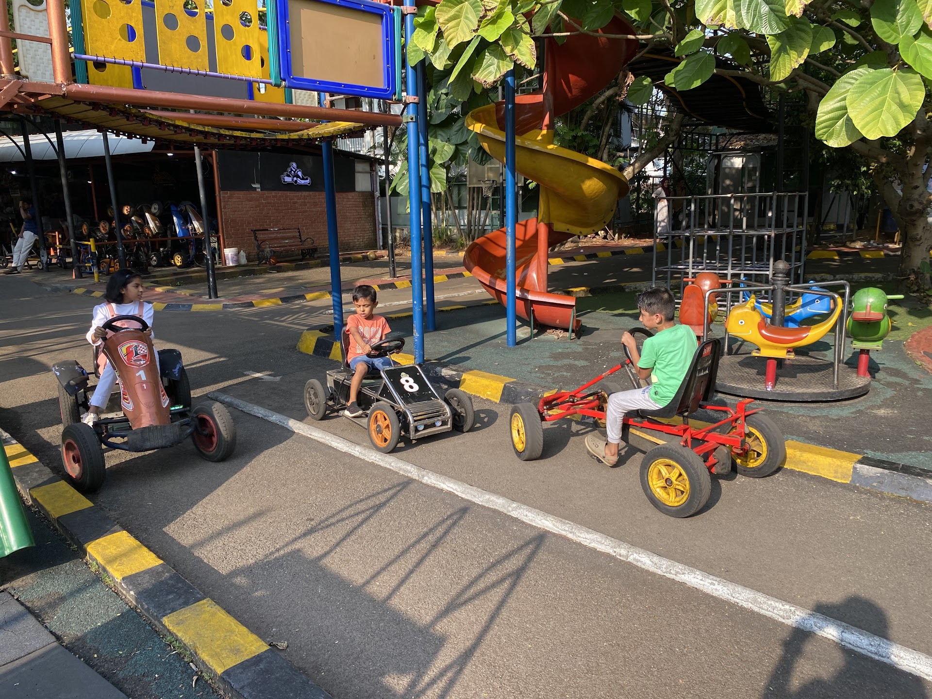 This place has the potential to provide quality entertainment for kids, but the lack of enough safety precautions would make one wonder how accidents are not happening here every minute..The main highlight here is the provision to ride both manual and electric cars on a tarred ākidās roadā. I hope they address the following concerns soon: