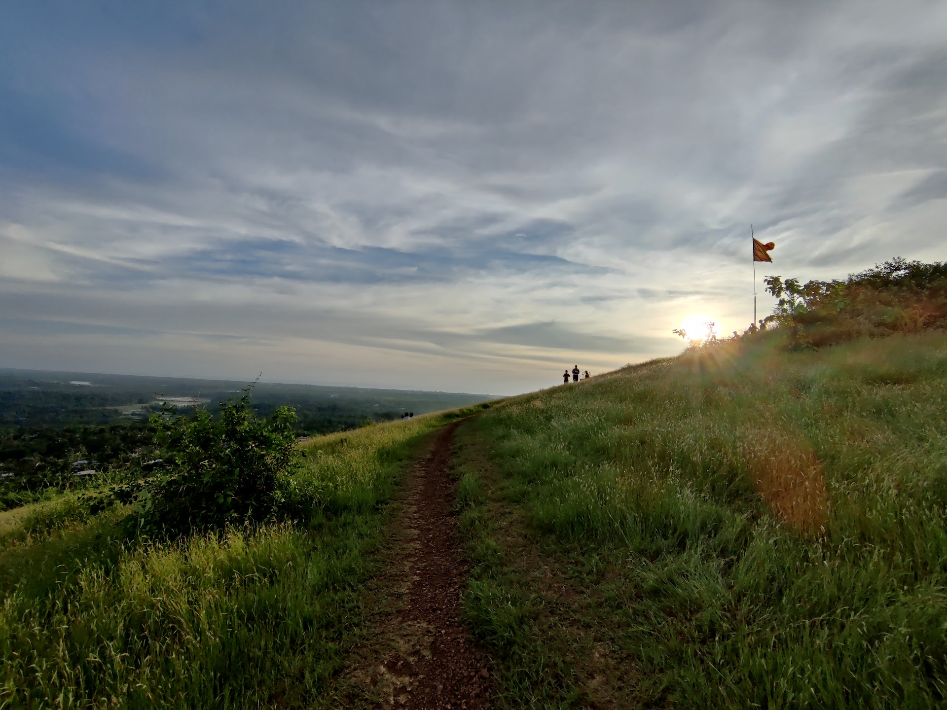 The hill does not have thick tree coverage, the small lone trees are the only resistance against the scorching sun as the day progresses. The viewpoint on the western side gives a glimpses of Arabian Sea at a distance, and in the evening the beauty of a red sunset and the multiple hues of the sky. The blue hills in the east is a favorite spot for wedding photographers.