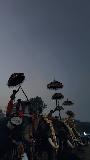 Pooram is a Kerala Hindu ritual festival in which generally caparisoned elephants are led in a controlled and organized procession. At Uthralikkavu Pooram, three teams, each from neighboring village temples Enkakkad, Kumaranellur and Wadakanchery participate. Each team normally presents seven to eleven elephants, all decorated with traditional trunk masks (netippaTTam เดจเตเดฑเตเดฑเดฟเดชเตเดชเดเตเดเด), shields (aalavaTTamเดเดฒเดตเดเตเดเด) and fans(veNchaamaram เดตเตเตบเดเดพเดฎเดฐเด). The elephant positioned at the middle will also have a large plaque (thiTamp เดคเดฟเดเดฎเตเดชเต or kOlam เดเตเดฒเด)on its top which represents the deity. There are many festivals in kerala used to celebrate like this. Some of them are Thrissur Pooram, Nenmara Vallangi Vela, Arattupuzha pooram, chinakathur pooram etc.