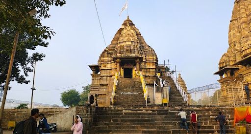 This temple enshrines one of the largest Siva-Lings of North India. The temple is worshipped and is holiest among Khajuraho temples, It stand: on a lofty pialiorm and shows a grand elaboration of Brahma tempfe on plan and design. Internally it is in square shape and externally urucifor and has a grand stepped pyramidal roof. The temple has devoid tre e suberant sculpture and ornamentation, which came to be a hallmark of the developed Khajuraho tempies. Therefore undoubtedly this some of the earliest temples of Khajurano, assigned to circa 900-925 CE