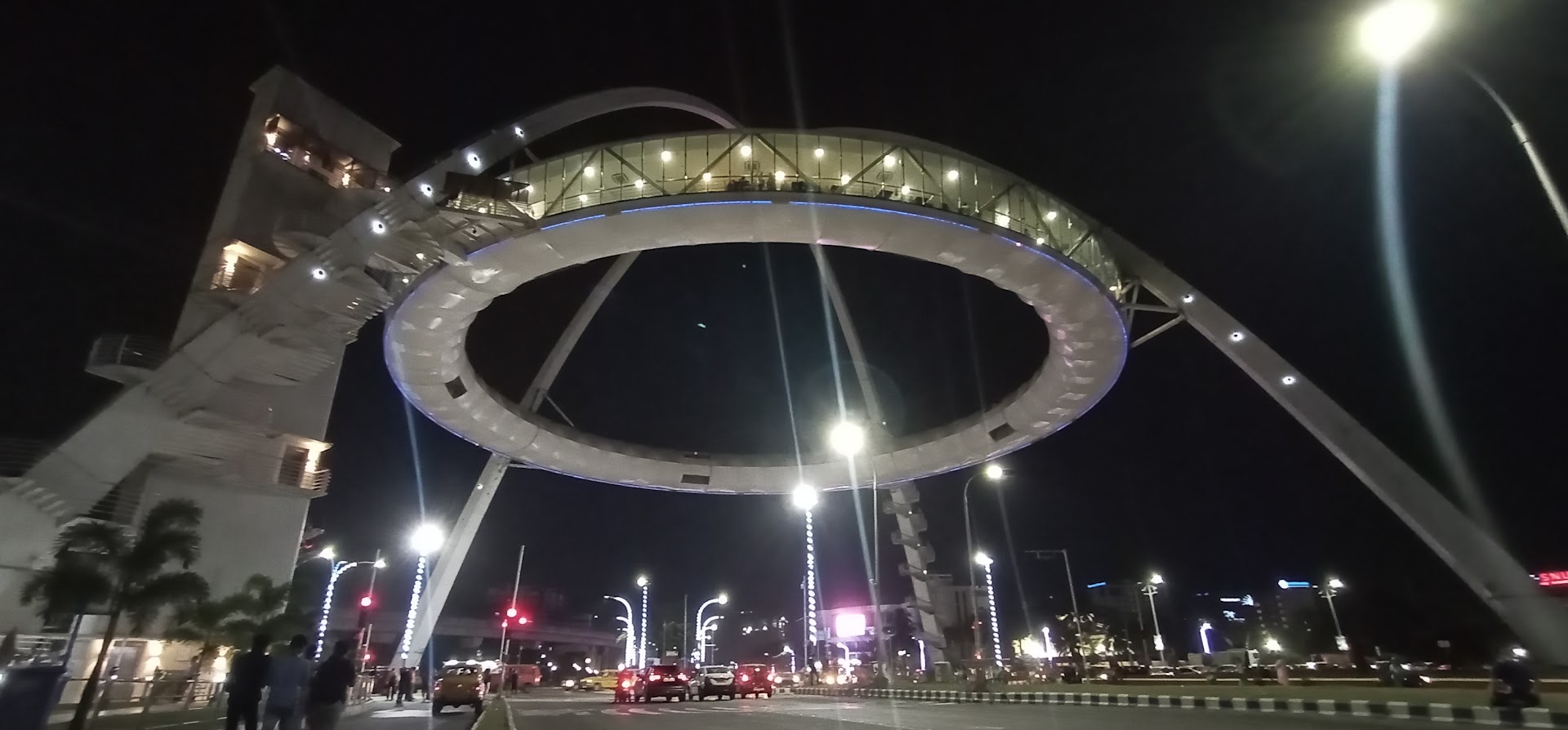 The most distinctive feature of Biswa Bangla Gate is its design, which resembles a gigantic ring suspended in the air. This ring is actually an elevated viewing gallery and a restaurant, providing panoramic views of the New Town area and beyond. The structure is beautifully illuminated at night, creating a mesmerizing sight that adds to the city's skyline.