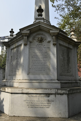 Much later,Ā Lord CurzonĀ took the initiative to build a marble replica of the Holwell Monument and placed it in the same position as the old one. The replica was erected on 19th December, 1902. He had not only built the replica but also placed brass lines and marble plaques, marking the site of the original or old...