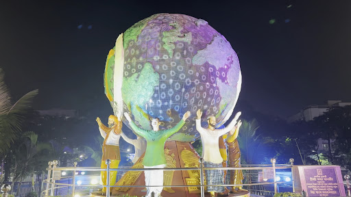 It has a broad pathway for a nice evening stroll, several statues of great personality adorned the pathway. A rotating globe depicting all religious places & people, is an eye catcher ! Goddess Durga's idol also serves as a perfect selfie point. A Howrah Bridge model across the canal looks very nice (more illumination along the borders could make it brighter, though). At the end of the walkway, the model of Dakshineswar Temple with Goddess Bhabatarini & Swami Vivekanada driving a chariot with Ramakrishna & Sarada Maa - is the highlight!