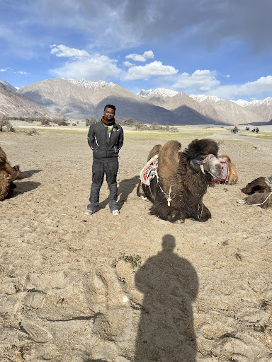 Read moreVisiting the Nubra Valley sand dunes was like stepping into a different world. The contrast between the high-altitude desert and the surrounding snow-capped mountains was surreal. Riding a Bactrian camel through the soft, golden sand was a unique experience—these double-humped camels, remnants of the old Silk Road trade, added a sense of history and adventure to the journey. The slow, swaying movement of the camel allowed me to soak in the vastness of the dunes and the dramatic landscape around me.