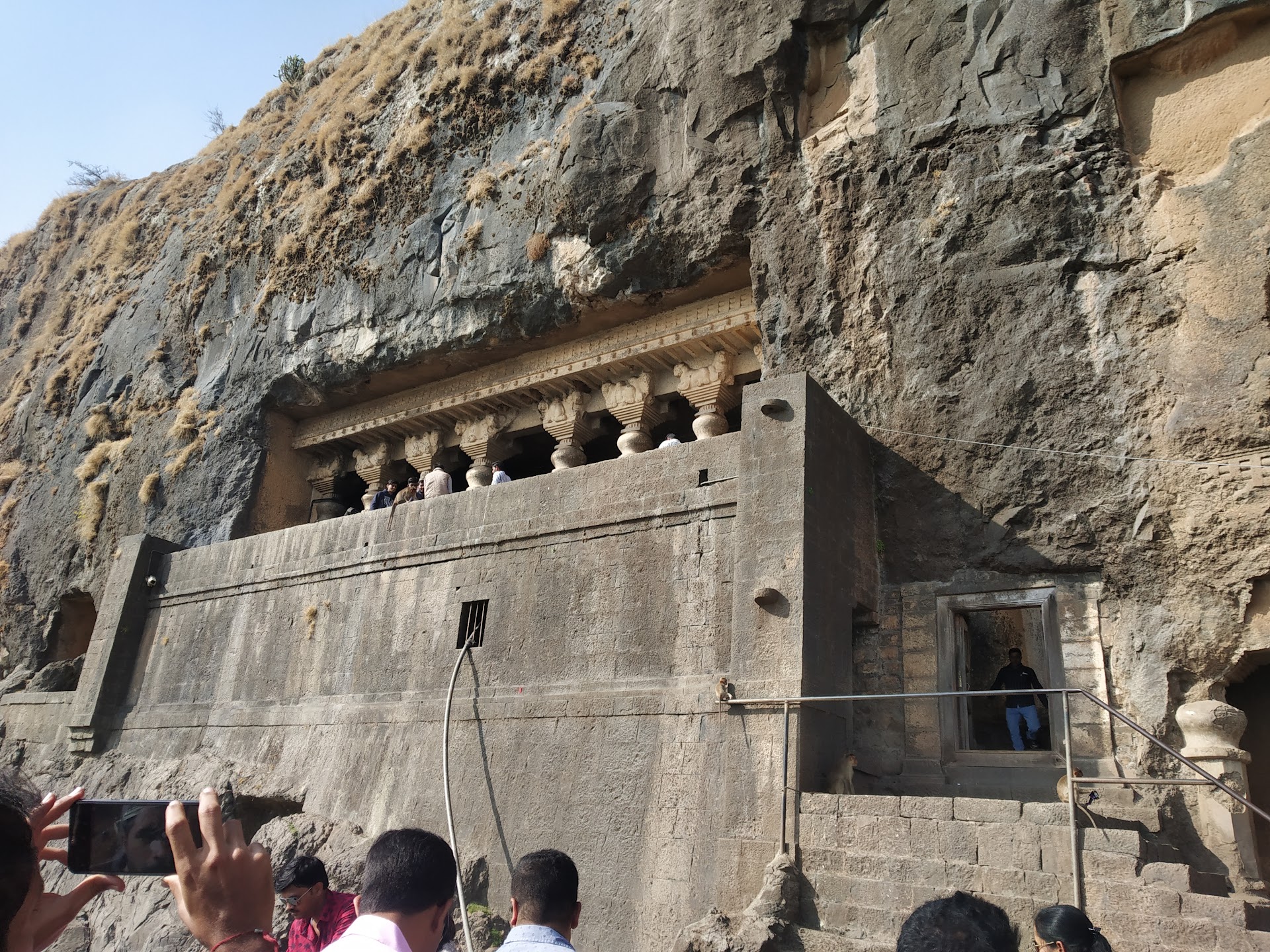In front of the huge entry gates of Shri Girijatmaj Ganesh temple are enormous pillars with pictures of elephants horses lions nd various other animals carved on them. Similarly there are pillars with different carvings in front of every other cave. The Sabhamandap of the temple is 60 feet wide with exactly 18 rooms of 7x10 feet2 area. These rooms, it is said, were used by saints for tapascharya. The neighbouring 6th cave and 14th cave have Buddha-pillars in them commonly known as Bouddha-Stupa. These caves are made into shape of hemisphere interiorly. That is why, echoes can be easily heard. That is why, these Stupas are also referred as the ‘Gol-Ghumat’s. The caves have carved pillars also alongwith the Stupas.