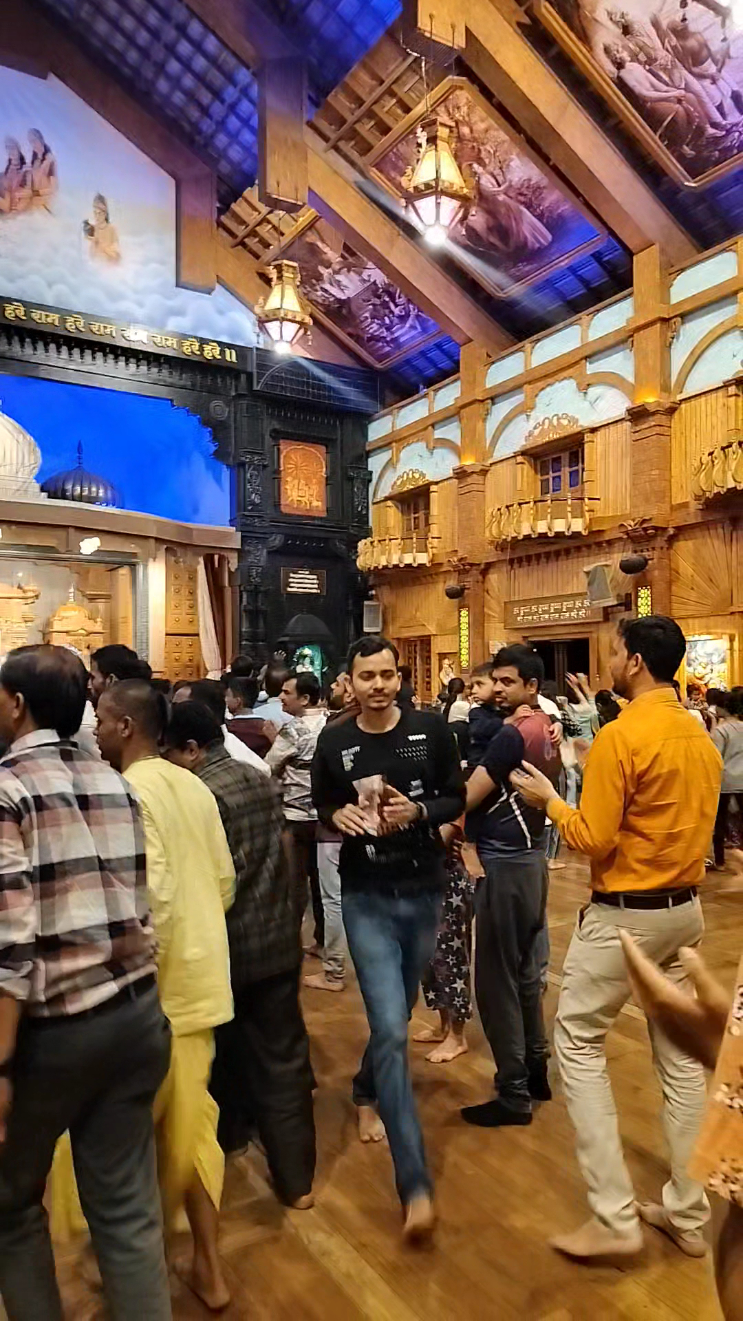 The first thing that struck me was how warm and inviting the place feels. The wooden interiors give the whole temple a very calming vibe, and the craftsmanship is just stunning. If you look up, you’ll see detailed paintings and carvings depicting Krishna’s pastimes, which add so much depth and beauty to the overall experience.