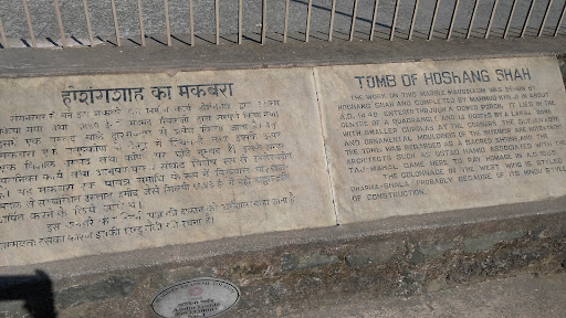 The tomb is a marble construction in honor of Hoshang Shah who holds a significant position in the history of India. It is noted that the tomb was constructed in the 15th century. The tomb was so beautiful that it impressed Shah Jehan and so he sent four of his architect before construction of Taj Mahal. It has been said that Ustad Hamid had a great association with the team who constructed Taj Mahal.