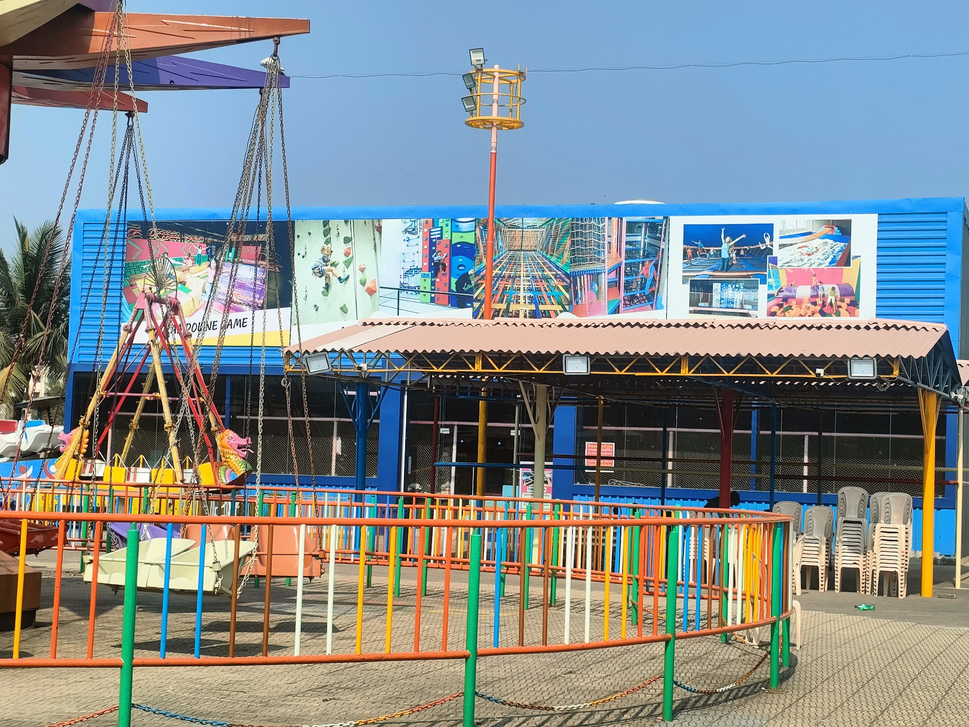 Park amenities and price --... $2 is the entry fee...... fun and amusement park Several rides are provided for adults, children, and families starting at 40 Rupees. Cost was 150 Rupees for 9D Theatre....... foods accessible for a reasonable cost Boating is possible and chargeable....... Costs for a trampoline park start at 200 rupees. Message and fish pedicure were formerly accessible but are now closed....... Parking is accessible