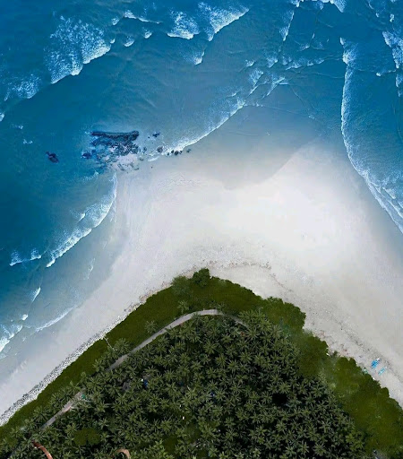 The beach's scenic beauty is captivating, with its long stretch of golden sand bordered by lush green coconut palms. The sunsets here are particularly mesmerizing, painting the sky in hues of orange and purple, creating a perfect backdrop for an evening drive or a peaceful stroll.