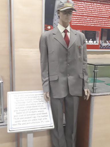 The Museum has two touch screen computers that play the DMRC corporate movie and animations describing the way tunnel boring machines and launching girders used in elevated construction work. Mannequins wearing the different uniforms worn by operations and construction staff, along with brief descriptions of these, a model of the Metro train, models of stations, share certificates and close-circuit television camera which visitors can use are included.