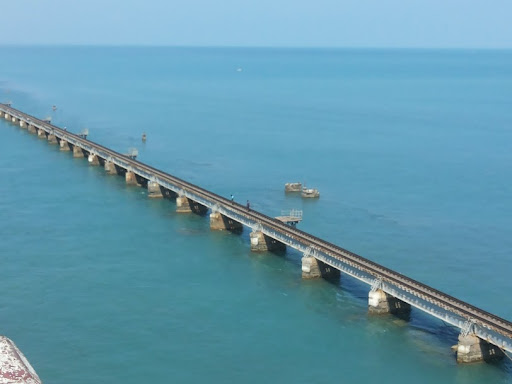 The Pamban Bridge - is a railway bridge on the Palk Strait which connects the town of Rameswaram on Pamban island to mainland India. It was the first sea bridge and the longest one until Mumbai got it's very own Bandra-Worli Sea link. The Pamban bridge now ranks the second in the country. The construction of the bridge dates back to the 1911 - as mentioned in the economic times, it is truly an engineering marvel that evokes awe!! It allows the ships to pass through beneath its piers. The rail bridge has passage like arrangement named "Scherzer Roll" in the middle of it.