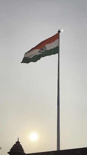 You see an Indian Flag standing tall in front of you. Women and men lines are separated for security check. Women bags are not allowed and can be put in lockers.