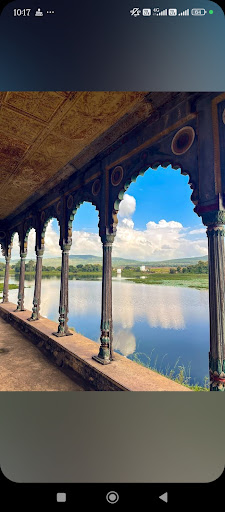 Read moreThe photo beautifully captures a glimpse of Govindgarh Palace, a historic and cultural gem located in Rewa, Madhya Pradesh. This palace, built during the rule of Raja Raghuraj Singh in the 19th century, stands as a magnificent reminder of the royal heritage of the Baghel dynasty. Nestled beside the serene Govindgarh Lake, the palace offers breathtaking views of nature, where still waters mirror the blue sky and rolling hills in the background. The arched corridors, as shown in the image, reflect the grandeur of traditional Indian architecture with intricate designs and artistic craftsmanship.