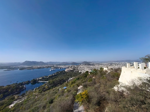 Offers spectacular views of Lake Pichola, Fateh Sagar Lake, City Palace, Sajjangarh Fort, and the Aravalli hills.