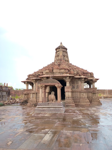 The ruins of a 12th Century Palace built by King Prithviraj Chauhan (1170-1192 A.D.), the Rajput ruler of Delhi and Ajmer, are located on the banks of the Menali river. This Palace was used by him as a mountain retreat during the scorching Summers of Rajasthan. It has a two-storeyed main gateway, carved with the images of Lord Ganesha and Lord Bhairava. There is a square courtyard beyond the entrance which houses a huge Shiva Temple made of stone, built in the ancient Hindu style of architecture with a carved pagoda and pillars. The walls of the Temple are carved with motifs of Hindu deities and various other themes, interspersed with images of elephants. The images of Lord Shiva and Goddess Parvati are depicted in various postures and are surrounded by dancers, musicians, lesser Gods and animals. A large stone lion is located halfway up the pagoda. The Shiva Temple is surrounded by a number of smaller...