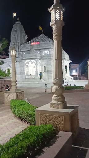 The beautifully maintained,architecturally exquisite Temple, at one of the main points of this Historic city, is a dedicated offering of the disciples of Sant& Siddha purush, Param poojya Ganga ram Sa. Take the Holy mruthiga, the Holy Sand, kept at the entrance to the Panchdev temple or the marble carvings on the walls of Aashirvaadh temple or the figures of Garudavahan at the very Entrance, every minutest detail is an humble offering to the Guru Maharaj, the Saint who is the inspiration. Miraculous happenings in the lives of the family of Swami Devakinandan & his very saintly wife, Gayatri matha ji & their children , as depicted in the miniature marble carvings in the Aashirwad temple & the flex banners stand as evidences of the miraculous workings of both the Saint/Siddha& the Divine powers. Although the happenings in the lives of the dedicated sishyas are depicted, yet, except for one incident, where Saint sidha purush, Gangaram Ji's initiation to the sishyas,on the banks of River Kalyani, no where has any mention been made about him his meeting the Devakinandans or his reason for choosing the city of Jhunjhunu to build this Temple. For a non- local, information such as the saint's life& the reason for believing that he's indeed an Avathar or ansh of The Lord Maha Vishnu ji, becomes essential. Surely, the present generation of the Trustees, would work on this essential aspect. The calmness here is because of the blessings of the Divine powers and the couple who had sacrificed themselves to be of service to the people. I learnt that every celebration here is done with complete dedication of all concerned. There is a spacious Auditorium besides a well kept garden. Temple architecture of both the shrines...