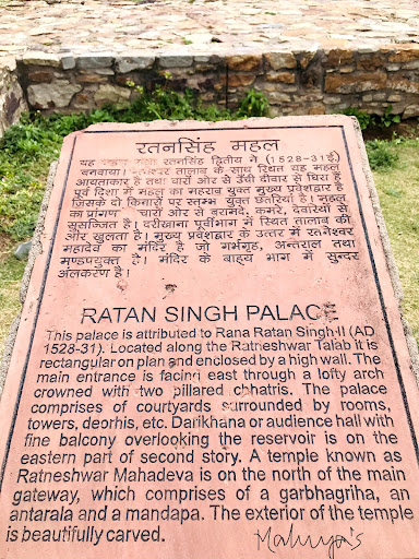 The Ratan Singh Palace is attributed to Rana Ratan Singh II (AD 1528 - 31). It is rectangular on plan and enclosed by a high wall. The main entrance is facing east through a lofty arch crowned with two pillared chhatris. The palace comprises a courtyard surrounded by rooms and a pavilion with balcony on the eastern part of the second storey.