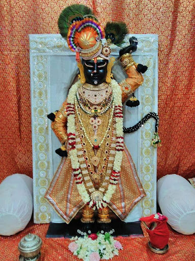 Read moreWe visited this temple as part of our Rajasthan tour by private taxi from Delhi. We came to this place from Pushkar. Ajmer to Nathdwara took us about 5 hours on NH 8. We left Pushkar at about 8.30 in the morning and reached Nathdwara at about 1.30 P.M.We looked for Hotel Gokul but since it had a bar we checked into Yatri mangala as advised by the counter clerk.After resting and freshening up we decided to go to the temple for 3.15 P.M. darsan.Our driver dropped us near the statue of Bhagat Singh and asked us to call him once our darsan was over.So we walked past rows of shops selling pooja items, bangles and knick knacks and sweetmeats asking people the way to the temple gate. We reached a closed gate which said Moti Mahal where devotees were waiting to enter. We saw someone who looked like a priest and asked him if he could arrange darsan.He wanted Rs.100 each and we agreed.We expected to be taken near the Deity but after showing us a short cut to enter he disappeared.The crowds were huge and men and women were sent in alternatively.We got a glimpse of Sri Nathji with His captivating Eyes . This seva is called 'Uthanpan' or the waking up after afternoon nap. It lasts for just 15 minutes. Men holding long cloths were hitting us softly on our necks to make us move out and make way for the devotees following us.We followed the crowds to the adjoining room where we saw Baby Krishna in a cradle surrounded by golden and silver toys like peacocks,cows , rattles etc. This Lord is called Navanita Priya. Being tired after the long journey and the jostling crowds we sat near the prasada stall and chanted Krishna slokas and bajans. We were surprised to see the priest calling us for darsan . This time we were taken close to the Deity and got to see Krishna holding His little Finger high up and was dressed in series of necklaces of varied sizes but what caught our attention was the nosering and we remembered 'Naasagre Navamouthikam' . Though this darsan was longer than the first we longed to see Him again.As we came out we saw two men pulling vigorously at the pankha, they were offering fan services for Krishna .We made some offerings there and bought a huge ladoo at the prasada stall.As we looked around we saw devotees carrying cut fruits ,rose petals and sweets.Near Navaneetapriya we saw two women holding a saree and rocking a baby.We went to the main gate and waited it to open .As we made our way inside we saw many musicians playing on different instruments but could not hear anything. All we could see were several coloured turbans and musical instruments.After resting for sometime we went for the next darsan.This time we saw Harathi darsan and inspite of the crowds we had a good darsan.We came out and bought tiny pearl necklaces crowns etc for our Gopala at home. We saw heaps of fruits and vegetables piled up and came to know that we could offer it for SriNath.Next morning we planned to come to the temple at 3.00 A.M.A lot of devotees were assembled there and were chanting 'Sri Krishna sharanam mama'. An old woman told us about how looking at different parts of Krishna protected us in different ways.She gave us a paper containing the verses and took Rs.20 as dakshina.Once the door opened everyone ran together and i had no hope of getting darsan but to our amazement He accorded darsan at one point of time and we got to see SriNath wearing a red cloth on His shoulder and a single strand of pearls.It was a satisfying sight and we came out satisfied and made our way out crossing rows of vendors selling dhoklas tea and other eats.We saw women with bundles of grass urging us to feed the cows. We bought 2 bundles fed two cows then had a cup of tea and headed towards our hotel to pack up and leave...
