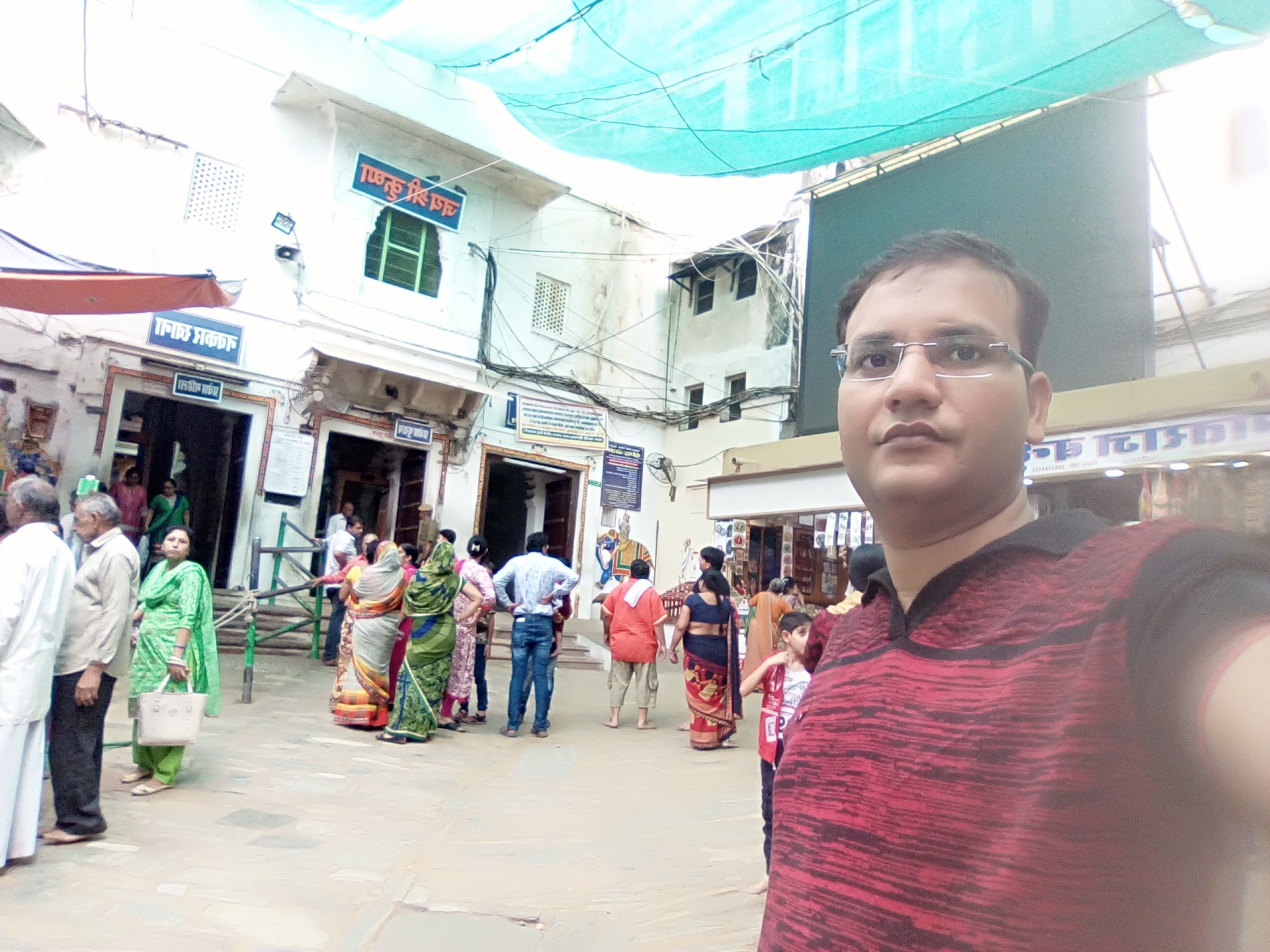 Read moreWe visited this temple as part of our Rajasthan tour by private taxi from Delhi. We came to this place from Pushkar. Ajmer to Nathdwara took us about 5 hours on NH 8. We left Pushkar at about 8.30 in the morning and reached Nathdwara at about 1.30 P.M.We looked for Hotel Gokul but since it had a bar we checked into Yatri mangala as advised by the counter clerk.After resting and freshening up we decided to go to the temple for 3.15 P.M. darsan.Our driver dropped us near the statue of Bhagat Singh and asked us to call him once our darsan was over.So we walked past rows of shops selling pooja items, bangles and knick knacks and sweetmeats asking people the way to the temple gate. We reached a closed gate which said Moti Mahal where devotees were waiting to enter. We saw someone who looked like a priest and asked him if he could arrange darsan.He wanted Rs.100 each and we agreed.We expected to be taken near the Deity but after showing us a short cut to enter he disappeared.The crowds were huge and men and women were sent in alternatively.We got a glimpse of Sri Nathji with His captivating Eyes . This seva is called 'Uthanpan' or the waking up after afternoon nap. It lasts for just 15 minutes. Men holding long cloths were hitting us softly on our necks to make us move out and make way for the devotees following us.We followed the crowds to the adjoining room where we saw Baby Krishna in a cradle surrounded by golden and silver toys like peacocks,cows , rattles etc. This Lord is called Navanita Priya. Being tired after the long journey and the jostling crowds we sat near the prasada stall and chanted Krishna slokas and bajans. We were surprised to see the priest calling us for darsan . This time we were taken close to the Deity and got to see Krishna holding His little Finger high up and was dressed in series of necklaces of varied sizes but what caught our attention was the nosering and we remembered 'Naasagre Navamouthikam' . Though this darsan was longer than the first we longed to see Him again.As we came out we saw two men pulling vigorously at the pankha, they were offering fan services for Krishna .We made some offerings there and bought a huge ladoo at the prasada stall.As we looked around we saw devotees carrying cut fruits ,rose petals and sweets.Near Navaneetapriya we saw two women holding a saree and rocking a baby.We went to the main gate and waited it to open .As we made our way inside we saw many musicians playing on different instruments but could not hear anything. All we could see were several coloured turbans and musical instruments.After resting for sometime we went for the next darsan.This time we saw Harathi darsan and inspite of the crowds we had a good darsan.We came out and bought tiny pearl necklaces crowns etc for our Gopala at home. We saw heaps of fruits and vegetables piled up and came to know that we could offer it for SriNath.Next morning we planned to come to the temple at 3.00 A.M.A lot of devotees were assembled there and were chanting 'Sri Krishna sharanam mama'. An old woman told us about how looking at different parts of Krishna protected us in different ways.She gave us a paper containing the verses and took Rs.20 as dakshina.Once the door opened everyone ran together and i had no hope of getting darsan but to our amazement He accorded darsan at one point of time and we got to see SriNath wearing a red cloth on His shoulder and a single strand of pearls.It was a satisfying sight and we came out satisfied and made our way out crossing rows of vendors selling dhoklas tea and other eats.We saw women with bundles of grass urging us to feed the cows. We bought 2 bundles fed two cows then had a cup of tea and headed towards our hotel to pack up and leave...