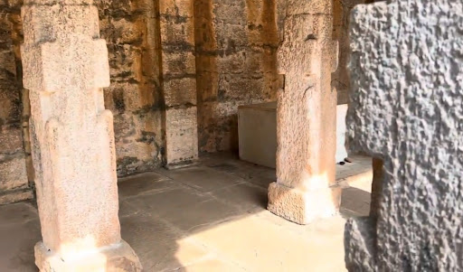 The structure, today, stands dilapidated with corridors on three sides leading to the garbagriha where an idol of worship once stood.
