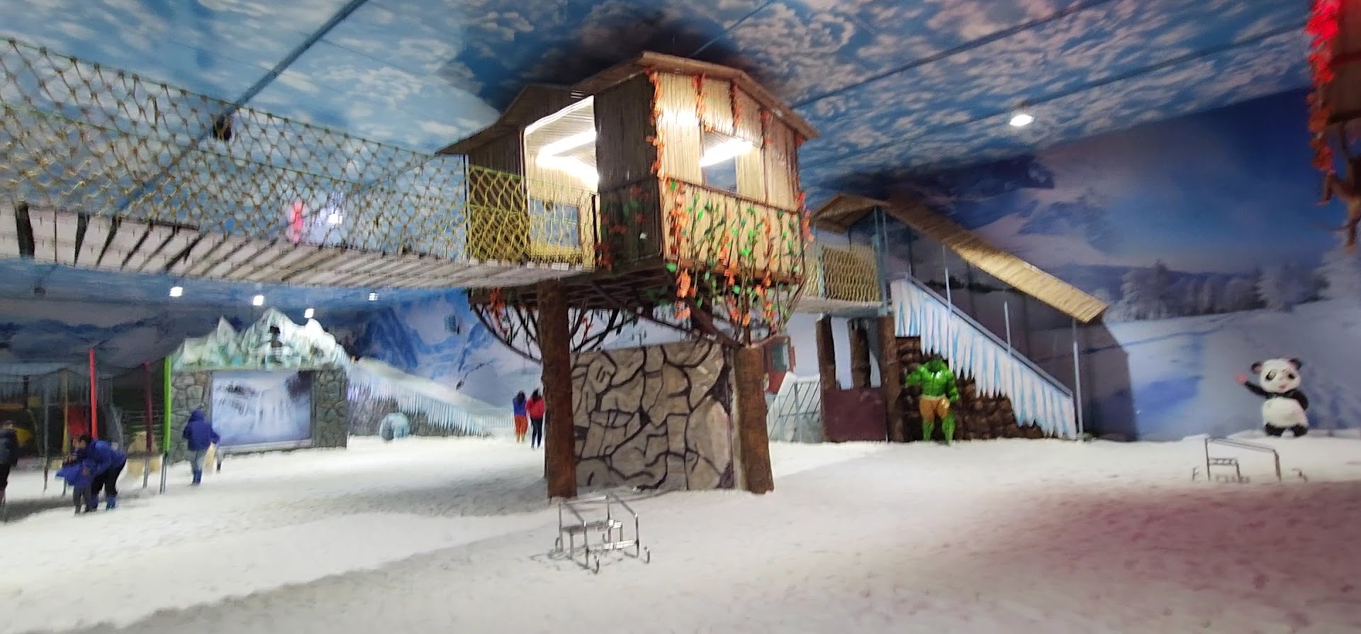 The moment you step inside Snow Park Rohini, you are transported to a world of winter wonder. The temperature drops drastically, and you find yourself surrounded by pristine, white snow. The park's impressive architecture and intricate detailing make it feel like an alpine resort, complete with artificial snow-covered hills and icy caves.