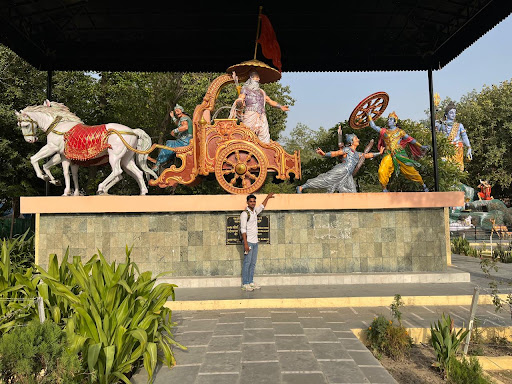 Beautiful temple. I loved the scene of Mahabharata where Lord Krishna was about to break his promise in which he swore that I'll not use my weapons and not at all fight and then Arjun request him not to kill Bhishma Pitamah because now I will not take the son of Ganga as my Pitamah. I will take him as my enemy and I would kill him for sure, so please Lord Krishna, do not use your weapons and put them please. Outstanding idols...