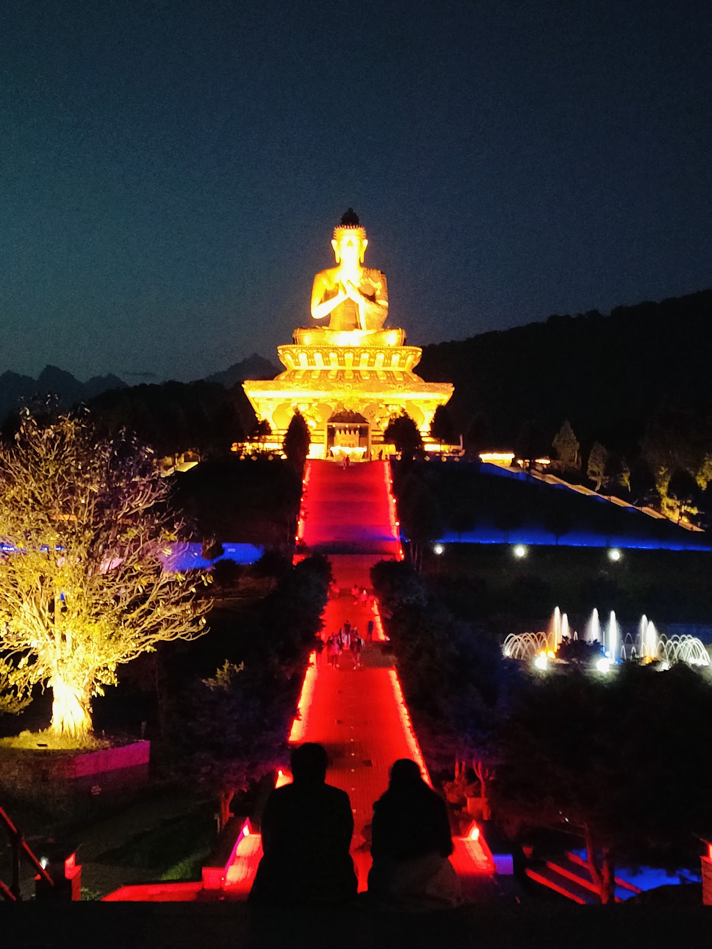 In the middle of the park, before reaching the main temple, don’t miss the reclining Buddha statue. This statue shows Buddha in a sleeping position and is painted in golden colour with a black robe, showing peace and detachment. The craftsmanship is outstanding, and the whole area around this statue feels sacred and calm. Right behind it is a smaller convention centre (though it was closed when we visited), which is usually used for Buddhist gatherings during festivals. Many people pause here to admire the surroundings, take pictures, and feel the calm atmosphere before moving ahead.