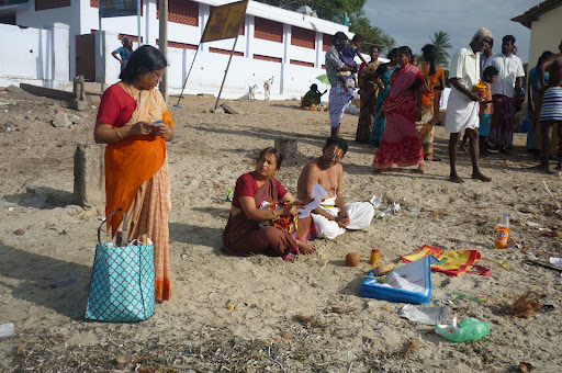 Read moreWe took Bus no1 from Srirangam bus stand to reach Tiruchi Junction. From Tiruchi we boarded Rameshwaram Express which usually comes on platform 4 around 11 .30 p.m. We got down at Ramanathapuram at about3.00 a.m. and took an auto to Tirupullani.which we reached in about half an hour. We had booked rooms in Andavan ashram. Ahobila Muth , Vanamamalai muth also have rooms for rent and can be pre-booked. After sunrise we headed for Chakra Theertham which was close to our room and took a bath there. Muthukrishnan our contact had arranged a vadhyar swami(priest) to accompany us to Sethukarai. We reached the seashore in about 20 minutes. Vadhyar swami made us sit on the seashore. He drew a bow on the sand and made us do puja to Kodandam which is the name of Sri Rama's bow.It was at this spot that SriRama waited for three days seeking permission from the ocean-god to build a bridge to Lanka . Called Dharbasayanam as Rama lay here on the dharba grass people pray here for papams (sins) committed by eating forbidden food not doing 'pitru-karmas'(remembering one's ancestors) etc. After the puja samudra snanam was done.We changed at the adjacent Hanuman temple and headed for the temple. We worshipped Adhi Jaganatha, Padmasini Thayar, Darbhasayana Rama, Valararasu the ever growing banyan tree. We saw an image of Santhanagopla and many statues of Sethupati kings whose descendants maintain this temple till date. We had the famous Tirupullani Payasam before heading out. Straw products are a must buy here and the hats , baskets and purses are a steal. This is a place one must visit atleast to sustain the livelihood of the people still living there inspite of hardships. Recipe for Tirupullani payasam Broken rice-1 cup naatu sakkarai- 1 cup or more cardamom-6 ghee-1 tablespoon cashew nuts and raisins-6 milk -4-5 cups. Cook the broken rice in milk after washing it well. Once mushy add naatu sakkarai mix well add powdered elaichi and garnish with cashew nuts and raisins fried...