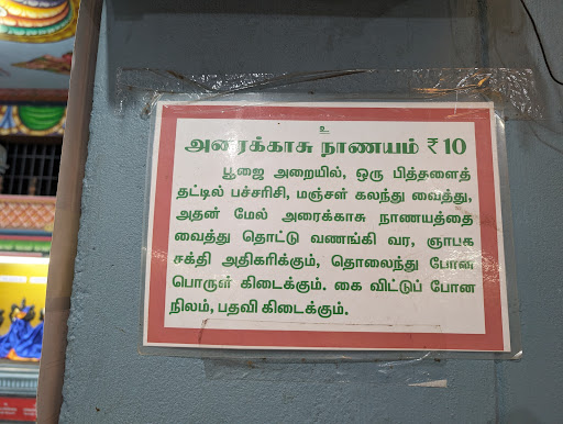 Read moreLost any important document or misplaced some costly items? People believe that if one prays sincerely the Goddess Sri Araikkasu Amman you will get it back soon. There are many true instances of getting the lost items as described by her devotees and the crowd gathering at the temple is a proof for it. There are idols of 107 Goddess from all over India and abroad located in the temple around Araikasu Amman's sanctum sanctorium. You can find your family deity too in these idols and worship. The Amman is very majestic and blesses from her Rathinamangalam abode. Devotees pray Ganapathi first, pray 107 Devis, then Meru Peetam, in front of the Araikkasu Amman and finally move towards the Main deity Sri Araikkasu Amman. The priest will help you in worshipping the Goddess with archana. This beautiful temple is located on the branch road of Vandalur-Kelambakkam Road at about 5 kms. There is ample parking space to park your vehicles and you can buy pooja materials from local shops. You get divine experience and peace of mind on visiting this temple. Another temple to visit is Sri Lakshmi Kubera Temple which is very near by. Visit with family and get blessed by...