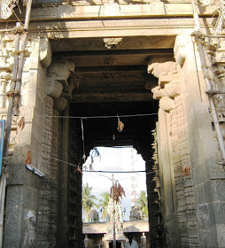 The temple entrance is 90 ft in height, with five storeys. It looks like elephants and horses driving a chariot. A notable feature is that sunlight falls on the horns of the Nandi on the 9th, 10th, and 11th of Masi month, and the light reflection looks like a crescent on Shiva's idol.