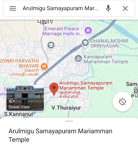 Read moreArulmigu Mariamman Temple is an ancient Hindu temple built in the Tamil Architectural style, located in the Samayapuram area of Tiruchirappalli District in Tamil Nadu, India. The main deity, here is the Goddess Mariamman , which is the form of Adi Parashakti and is made up of sand and clay, with extractions of medicinal herbs , in a way which is absolutely different from the traditional stone idols. This is the reason why there is no Abhishek (sacred bathing) conducted to the main deity, but instead the "abishekam" is done to the small stone statue in front of it. Main religious festivals celebrated here are the Chithirai Car Festival, Poo Choridal Festival, Vaikasi Panchaprakaram Festival and the Thai Poosam Festival. The temple attracts thousands of devotees on Sundays, Tuesdays and Fridays, the holy days for Mariamman. It is said that the King Vijayaraya Chakravarti II built the present day temple in the early 18th century. Little information about the past history of the period is available before that however it is believed that the locals worshipped the Goddess for many centuries before the building of the current temple. Mariamman, an incarnation of Maa Parvati, is worshipped mainly with focus on bringing rains and curing diseases like cholera, smallpox, and chicken pox. She is considered as a guardian deity, kaval deivam, by many South Indian villagers. Tiruchirappalli, also known as Trichy, is an important spiritual hub in Southern India and Samayapuram is also known as Kannanur. The temple has a resting hall to accommodate the large number of devotees who stay here for days altogether. A big parking space is available outside the temple. However it was seen by me during my visit on 17th of November, 2024, that generally the temple surroundings, the way to the temple’s entrance , the inside corridors and halls, are all crowded, encroached for commercial purposes , badly maintained, and ill kept. It reflects the bad management by the concerned...