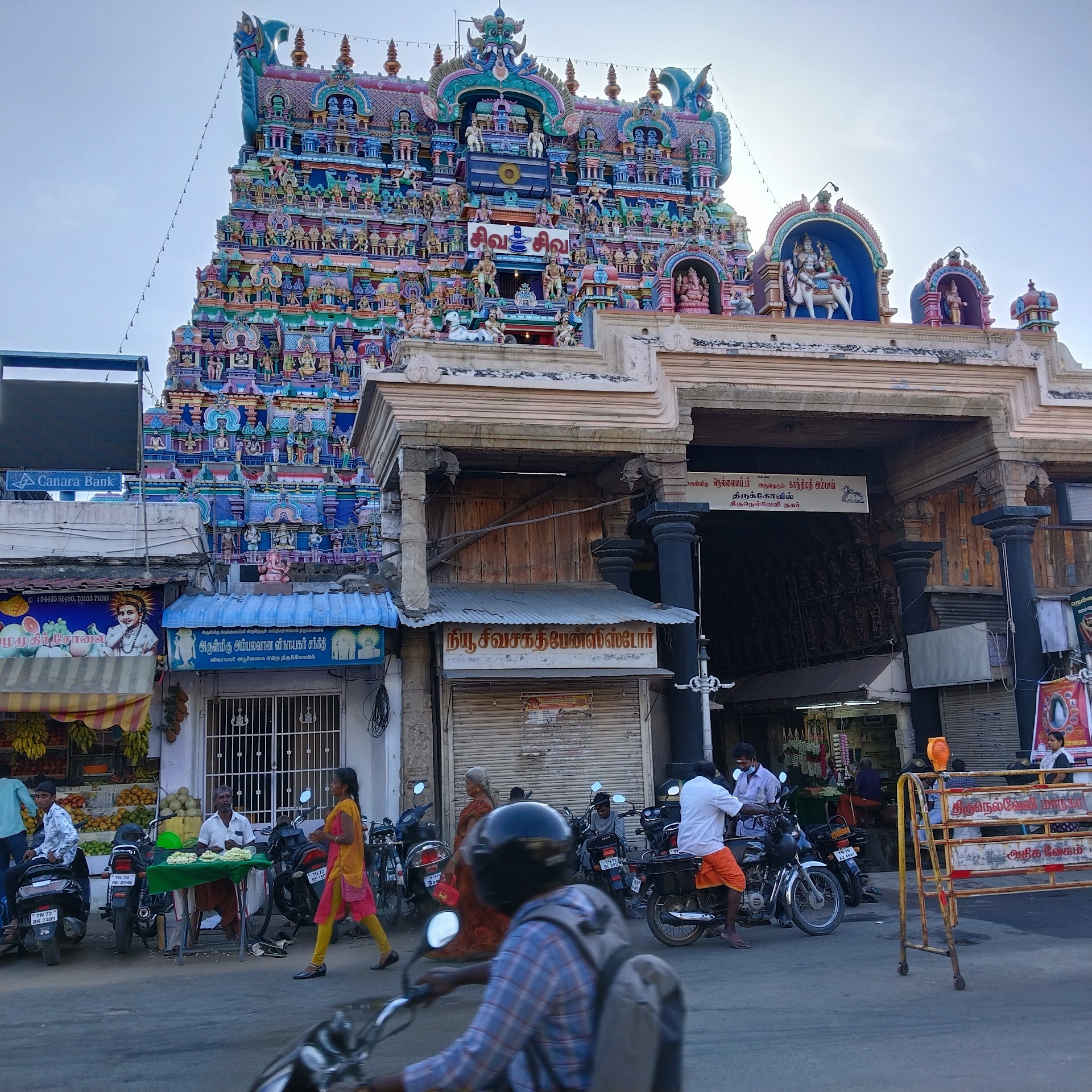 Read moreWhat a marvelous temple. Both divine and our ancient rich heritage meets in one place. Very very big temple. One can't imagine the pillar carvings, sculpture designs. Our ancestors and kings dedicated their time & money for making this temple with 200% perfection which we can't see in any part of world. Each statue is different and lots of stone embossed letters. I wondered how it is possible to image and executed even without any paper, plan , tools etc.. We need to bring our children here often to showcase our rich heritage and made them proud of our India. I have visited in normal week day so no rush and I have a opportunity to worship God very near close and satisfied. Siva lingam is very old and not like the shape we see in photos. It is real perfect linga. With minimal decoration, Siva looks beautiful. Also, worshipped Ambal and seen big elephant Gandhimathi. Near theppakulam, around more than 6 Kasi viswanathar linga was placed very close each other. Never seen in any other place. Also very big nandhi infront of Nellaiappar - mesmerizing. Some cracks seen in the top roofing in main entrance. Since age old structure , it is obvious. Need Government attention immediately to plug those to ensure cracks doesn't spread further to protect our golden temple. For eating, I would suggest to walk little bit around and eat at Vishaka bhavan hotel located end of pothys silks road (near corner of temple wall). Príce is good and don't hurt stomach. Iruttaki kadi halwa shop infront of Temple entrance doesn't offer hand made halwa no more. So standing in the queue in evening hot sun, no use. Better walk a little bit right side and buy the same authentic iruttukadhi halwa from Visakham sweets (their own branch only). Infact, it is written in their notice board as well. They went to advance machine packing so even if you stand & buy evening also you get the old packed items only, I mean 2 or 3days old but expiry...