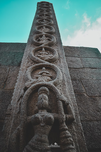 Read moreUNESCO listed Group of Monuments at Mahabalipuram, is an awe inspiring yet unfinished architectural work from the Pallava period. Though construction was never completed, the surviving structure speaks volumes of its intended grandeur. The massive stone pillars are adorned with intricate carvings, including medallion-style sculptures depicting various deities most notably the ten avatars of Vishnu. Each figure is executed with precision, showcasing fine details in posture, expression, and symbolic attributes.