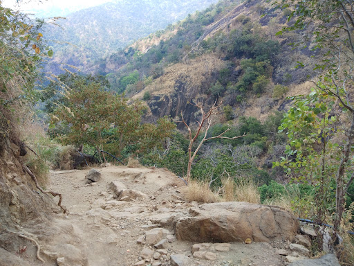 The initial phase of the trek for about a couple of kilometres is a pleasant paved way. I have come across a Ganapathy Temple which is unique. Normally the trunk of the Ganapathy was either left swirled or right swirled here it is in the pose of blessing you. The next identifiable place is a forest department house called Aththi Uththu (A spring under a fig tree). I have to cross a small Vazhukku Parai (Slipping stone) where the steps are carved rudely and if you slip you have to fall down. During rainy season naturally these rocks should be slippery and hence the name is more apt. There are also two small caves where you can take rest in case of need. Once I crossed this stretch then I get a forest department shelter from where I had to get down to cross the river and reach the other side. There is always a iron chain for the pilgrims to take assistance during this stretch. Once I cross this rivulet then it is only climbing steep climbing and zig zag climbing till the last half a kilometre. The mighty hills and the path ahead are given below for you to realise the tough task ahead for next two hours. Once I climb the steep steps carved out of solid rocks I get zig zag climbing for next few kilometres. These are paths, stone paved ways and in times only tree roots. You can see the queue up and below like Zee. The valley gives sufficient cool and shadow as the Sun is to my left in the morning and my way is south to north. Now I get a sufficient space between my hill and opposite hill and the valley of the river is down below me. Sometime after I come across a place called Karappasu. This place is worshipped as it shows the impression of cow leg in the stone. Korakker Caves is my next destination. Korakker is one of the 18 Siddars who meditated in a place around 50 feet down. This place is easily identifiable by a big Shiva Image drawn on the rocks. There is a small stream near the cave where he meditated and this water is considered pious. Many skip this place because you have to get down and climb up 50 feet to continue your journey. After passing this I get a structure which is the temple of Erattai Lingams. There are two lingams with two Nandi in a temple. Both are self-manifested and since it is a set of two called as Erattai Lingams i.e., twin lingams.Further little ahead I get a small pond which was dry when I saw called as Naval Uththu. This is below a jamoon tree and the water of the pond believed to be a cure for diabetics. Another half an hour of trek finally gives way to Big Vazhukku Parai. Howsoever you are experienced a little bit of care is required during rainy season. Fortunately for me it is only imagination as there is no traces of water and it is bone dry. Some more time walking through the side of the dry stream and also crossing the stream in a place you get a huge Jackfruit Tree below which the Palavadi Karuppanna Swamy Temple. This is the God who safeguards the health of the people. Normally these temples are at the entrance of villages and are revered much. The name Palavadi indicates literally the temple below the Jackfruit Tree and by constant usage Pala Adi became Palavadi. The Stream now passes in front of the temple. There is a small village deity also opposite to this in the edge of the stream. The small circular valley comes to a dead end with ways to both my left and right side. The left side temple is preferable first which is Sandana Maha Lingam as you have to climb around 100 steps by crossing the bridge over the stream. The deities here are 18 Siddars, Sandana Ganapathy, Sandana Murugan, Sandana Maha Lingam and Sandana Maha Devi in that order. After coming down I have to climb the opposite direction but a short length. First I am bestowed with the Sundara Murthy Temple There is also another place called Tavasi Parai. This rock formation looks like a Ganapathy from an angle. This place is another 150 metres above the Sundara Maha Lingam temple. There two big rock boulders within which all the 18 siddars used to...