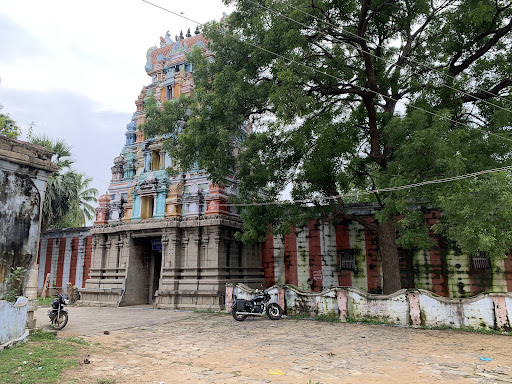 ARCHITECTURE The sanctum sanctorum is on a pada bandha adhistanam with jagathy, three patta kumudam and pattikai. The Bhitti starts with vedikai. The pilasters are of Vishnukantha pilasters with square base, kalasam, kudam, plain mandi, palakai and tharanga pothyal. The prastaram consists of valapi, kapotam with nasikudus and viyyalavari. Mahara thundam are shown on the corners. The Vimanam above the prastaram is of 2 tala brick Vesara Vimanam. The mukha mandapa pillar has the sthala purana sculptures of two sisters separating rice from paddy. A kunthani / Ural with ulakkai are kept near that pillar to remind the sthala purana. Amman temple consists of sanctum sanctorum, ardha mandapam and mukha mandapam. The other features are similar to main sanctum sanctorum. An eka tala salakara vimanam is on the sanctum sanctorum. Ambal entrance mandapam is supported with two squatting lion pillars.