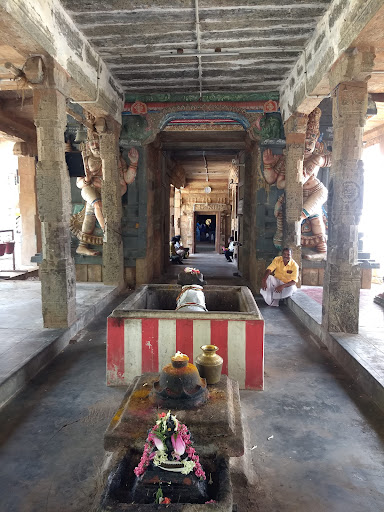 A swayambulinga existing in this place then g0t buried under the sand here. A chola king was ruling this place then. He had an attack of paralysis and no doctor was able to cure him. He fell at the feet of Lord Shiva finally. An aged couple came to his court, gave him the water dissolved with sacred ashes. The king got up completely cured and requested them to stay in the place as royal doctors which they declined. He offered them gifts of gold which too they denied to accept. When the king asked them what exactly they wished, brought him to this place and asked him to build a temple where the Shivalinga was then and simply disappeared then. The king understood that the visitors were but Lord Shiva and Mother Parvathi and built the temple. People pray to Lord here for relief from disease-Pini in Tamil. Saint Gnanasambandar has mentioned Lord in his hymn as Pini Neekkum Shiva. Generally, we find only one Ambica shrine in Shiva temples. There are two Ambica shrines side by side. During the construction of the temple, Ambica in the place was lost. Hence, a new Ambica idol was made and installed and named Arumarundhu Nayaki meaning that She came as a medico. Within a few days, the original Ambica idol also was found and installed with the name Apoorva Nayaki. She is the main Ambica of the temple. This is the temple to seek relief from the Karkadaka-Cancer in English and Nandu in Tamil-zodiac sign comprising of three stars-Punarvasu, Poosa and Ayilya. The hole on the body of the Linga created by the Nandu and the scar caused by Indira is still visible. There is a shrine for Moon-Chandra at the entrance of the temple. Those having problems due to Moon aspects pray in this shrine.