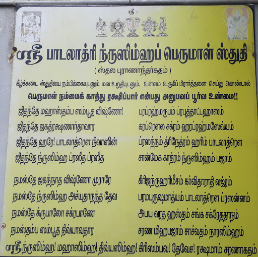 Read moreWonderful divine experience. I regularly go to visit Singaperumal Koil temple once in a month. Post Covid, there's lot of improvement in the temple administration. There's a car park area for a few of ₹20 down the sannidhi street, opposite to Theru. Street vendors are good, who sell thulasi, flowers, lamps etc and converse in a friendly manner. One can leave the shoes at their shop outlets. Temple has been renovated last year. Gopuram is taller and beautiful now. Inside floor is fully concrete. After entering devotees pray the dhwaja stambham and light the ghee lamps opposite to the main entrance. Those willing, can pay ₹100 at the counter at the entrance for preparing paanakam (jaggery plus water) which will be ready in half an hour by the time you complete Darshan. Paanakam can be distributed to the devotees by yourself. After going inside Andal, Narasimhar, Mahalaxmi sannidhis are there. Moolavar's third eye can be seen during aarathi. Thulasi and thayar kumkuma can be collected. While doing pradakshinam around the temple, you will never miss the PRASADAM counter. Dosa with chilli powder in oil is the most popular dish. Each ₹30. You can eat there and also take a parcel to home too. Very delicious prasadam which makes you an addict to it in future visits also. Small vegetable and fruit shops on the road are worth shopping, as the rates are very reasonable and goods is fresh, as it comes from the nearby villages. On the main road, you need to go further south a bit, to take a u turn back to the city. High way is being widened and lot of good tea shops are available, to give a finishing touch to the visit to the temple. Swathi star is a special day at SPkoil as it is Narasimhar's star. Please visit with family once in a month atleast to get blessings of the Lord and to get rid of all your enemies, both outer and inner. Sri Lakshmi Narasimham...