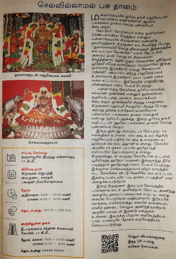 Read moreIf you stay overnight at Mannargudi and worship Rajagopal swami, it is said that you would attain punyam for donating 1000 cows.