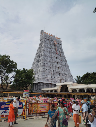 After parking, we took auto to temple. We are totally 6 people including 1 old lady and a 1.8 months baby. My brother in law straightly went to the office management (which is next to annadhanam area) to get a wheel chair for grandma. 1 person can accompany an elderly person, so they both went. Myself and other two with the baby went in ₹100/- ticket line. There is free dharshan line also which may take around 3 hrs to see the god. Ours took 1 hr 25 minutes to see the god. Standing the line was not hard while the goal is to see the glory. We are happily moving and the line was also somewhat faster. While moving in line, you have lone vendors who sell flowers, archanai bags, plastic fans (visiri), sundal, etc., to keep you relaxed. Trust me without the plastic fan 🪭 you will suffer in line. Definitely to buy if you have baby 🍼 with you. It is a life saver.