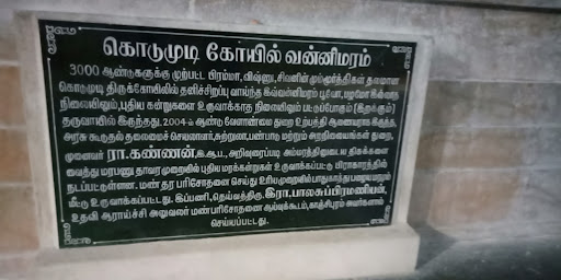 Saint Sundarar had the privilege of having Lord Shiva as his constant companion and is praised as Thambiram Thozhar-Friend of Lord Shiva. In his hymn, he says that the day would be inauspicious if he did not think of the Lord and adds that even if he forgets Him, his tongue would not forget chanting His name Nama Shivaya. This is the 6th temple in Kongu Region praised in Thevaram hymns. 11 day Chithirai Tirunal festival in April-May is the main festival of the temple. Devotee crowd will be huge on the Aadi Perukku day in July-August. Special Pujas are performed in the temple on new moon, full moon days and on Pradosha days-13th day of new moon or full moon days, a day of great importance for Lord Shiva worship. Historians are not able to estimate the age of the Vanni tree of the temple. It is too ancient. If a leaf of the tree is put in a pot of water, the purity lasts for years. Those carrying Theertha Kavadi –Water Pots-to Palani for Panguni Uthiram (March-April) festival place this leaf in the water pots. Devotees throng the place for performing Tarpan for the ancestors on the new moon day in the CauveryRiver. Devotees also celebrate their 60th birthday here with Ayush Homa for longevity. A competition arose between Adisesha and Vayu the God of Winds about their might. They put the Meru mount at a centre which was tightly held by Adisesha. Vayu blew with all velocity to push Adisesha. Meru split into seven pieces, each as a Gem Shivalinga. The diamond piece fell in Kodumudi. This is a place for Naga worship. Majority of the devotees come here seeking relief from adverse effects of...
