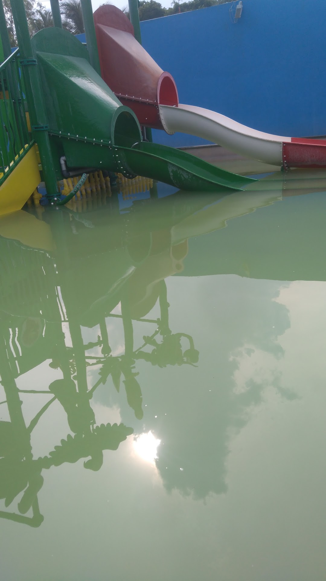 Big swimming pool was there with slide and water spray setup, they switched on only one setup at a time, either spray or sliding. It could be due to less members.