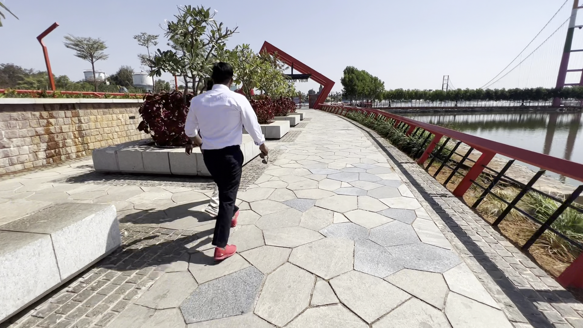 🌉 Key Highlights • Architectural Design: The Ruby Necklace features a vibrant red color scheme with angular frames and LED lighting, creating a captivating visual, especially at night. • Suspension Bridge: A pedestrian bridge spans Komati Cheruvu, offering panoramic views of the lake and surrounding areas. • Night Garden: Adjacent to the Ruby Necklace is the Night Garden, adorned with glowing animal sculptures and a musical fountain, enhancing the nocturnal ambiance.