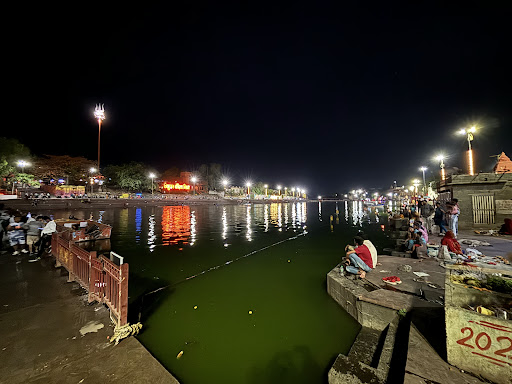 Scenic Beauty and Atmosphere The ghat is beautifully situated along the tranquil banks of the Shipra River. The serene waters, combined with the backdrop of ancient temples and the rhythmic chanting of prayers, create a profoundly peaceful and spiritually uplifting atmosphere. The sight of the ghats lit up during evening aarti (prayer ceremony), with oil lamps floating on the river, is truly enchanting and leaves a lasting impression on visitors.