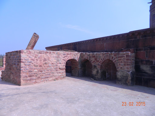 It's said that "Hiran Minar" is memorial or a grave of Mughal Emperor Akbar's favriout elephant whose name was ,"Hiran" means "deer". And this is the place, where he used to punish the criminals. But a short trip and a little analysis of this place ctreats doubt about the local guides and historians theories about the utility of this structure. Point 1. Hiran Minar is remotely located structure from palace of Fatehpur Sikri it's a 1km walk from Jhodha Bai's Palace and 1.5 Km from main courtyard, why Emperor coming 1.5 km away from his courtyard while punishment could be served only there. Point 2. If you see the back side of structure you will find a well which is joined to the base of the Minar by a small cannel. And if you pour out the water from well and drop into the adjoining cannel the water will directly go inside the Base of the structure. So why flrushing water inside the structure the answer is in front where you find a fish shape water outlet, definitely this structure was a water dispesing unit. Point 3. This will support point 2 as this structure is situated in front of "Hanthi Pol" and "Carvan Sarai", "Hanthi Pol" is said to be main entrance gate for the army and "Carvan Sarai" was a square shaped building with several quarters and a open area in the middle where visitors, merchants and piligrims used to stay, so it's an important point from where thousands of humans were passing every day and a fresh water dispensing unit is one of the most important thing which was required there. Point 4. If you will search Jyoti Stambh on Google you will find several images of structures just like "Hiran Minar" these structures are towers which contains thousands of lamps and are an important part of Hindu temples in ancient time. These structures are used to guide direction to pilgrims in night. Point 5. as earlier mentioned in point 3 that is was a very important place where thousands of people reaching everyday thus a Jyoti Stambh or a light emitting unit is required here to guide direction towards this place in night. Point 6. it could be a coincidence that a tower containing thousands of burning lamps in the night definitely looks like a golden tower in night from far and "hiranya" is a synonym of golden in Hind. So it's could be "Hiran Minar" or "Hiranya Minar" or...