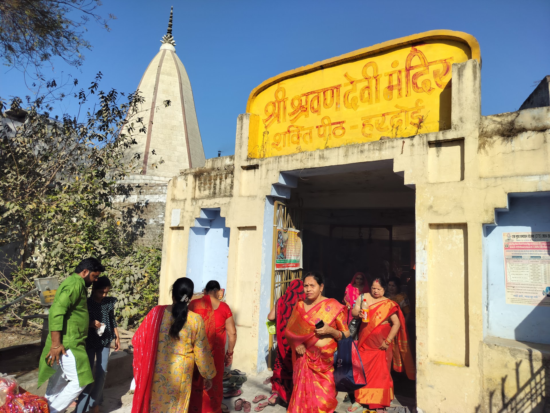 рдПрдХ рд╕реНрдерд╛рдиреАрдп┬ардЬрдирд╢реНрд░реБрддрд┐┬ардХреЗ рдЕрдиреБрд╕рд╛рд░ рдпрд╣рд╛рдБ┬ардкреАрдкрд▓┬ардХрд╛ рдкреНрд░рд╛рдЪреАрди рдкреЗрдбрд╝ рдерд╛, рдЬрд┐рд╕рдХреА рдЦреЛрд╣ рдореЗрдВ рд╢реНрд░рд╡рдг рджреЗрд╡реА рдХреА рдкреНрд░рд╛рдЪреАрди рдореВрд░реНрддрд┐ рдкреНрд░рд╛рдкреНрдд рд╣реБрдИ рдереАредрд╢реНрд░рд╡рдг рджреЗрд╡реА рдордВрджрд┐рд░┬ардЙрддреНрддрд░ рдкреНрд░рджреЗрд╢┬ардореЗрдВ┬ард╣рд░рджреЛрдИ┬ардЬрдирдкрдж рдХреЗ рдореБрдЦреНрдпрд╛рд▓рдп рдореЗрдВ рд╕реНрдерд┐рдд рд╣реИред рдЗрд╕ рдордВрджрд┐рд░ рдХреЛ рджреЗрд╡реА рдХреЗ┬ард╢рдХреНрддрд┐рдкреАрдареЛрдВ┬ардореЗрдВ рд╕реЗ рдПрдХ рдорд╛рдирд╛ рдЬрд╛рддрд╛ рд╣реИред рдорд╛рдиреНрдпрддрд╛ рд╣реИ рдХрд┐ рдЗрд╕ рд╕реНрдерд╛рди рдкрд░┬ардорд╛рддрд╛ рд╕рддреА┬ардХреЗ рдХрд░реНрдг рднрд╛рдЧ рдХрд╛ рдирд┐рдкрд╛рдд рд╣реБрдЖ рдерд╛, рдЗрд╕реАрд▓рд┐рдП рдордВрджрд┐рд░ рдХрд╛ рдирд╛рдо 'рд╢реНрд░рд╡рдг рджреЗрд╡реА рдордВрджрд┐рд░' рдкрдбрд╝рд╛ред