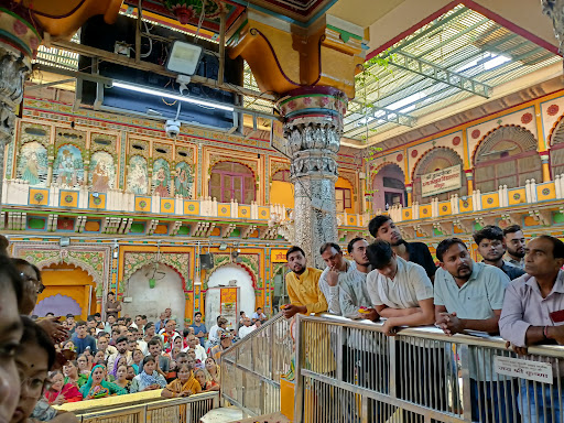 You'll find the Garbhagriha, or a sanctum sanctorum, in front of the yard housing the holy Idol. A curtain covers the entrance during closed hours. The pictures on the courtyard's walls depict Lord Krishna's birth and his performance of the Raas-Lila. It also houses numerous other Hindu deities within the temple premises. A small Tulsi (holy basil) plant, Lord Krishna's favorite, is also present nearby.